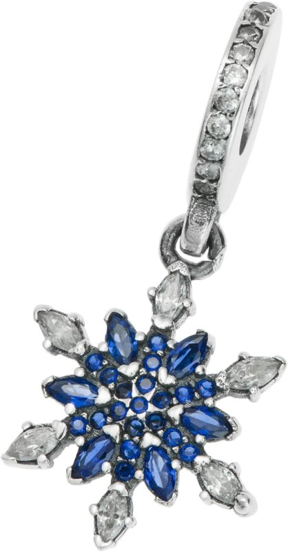 Antique Sterling Silver Snowflake Blue CZ Crystal Dangle Bead for European Charm Bracelets