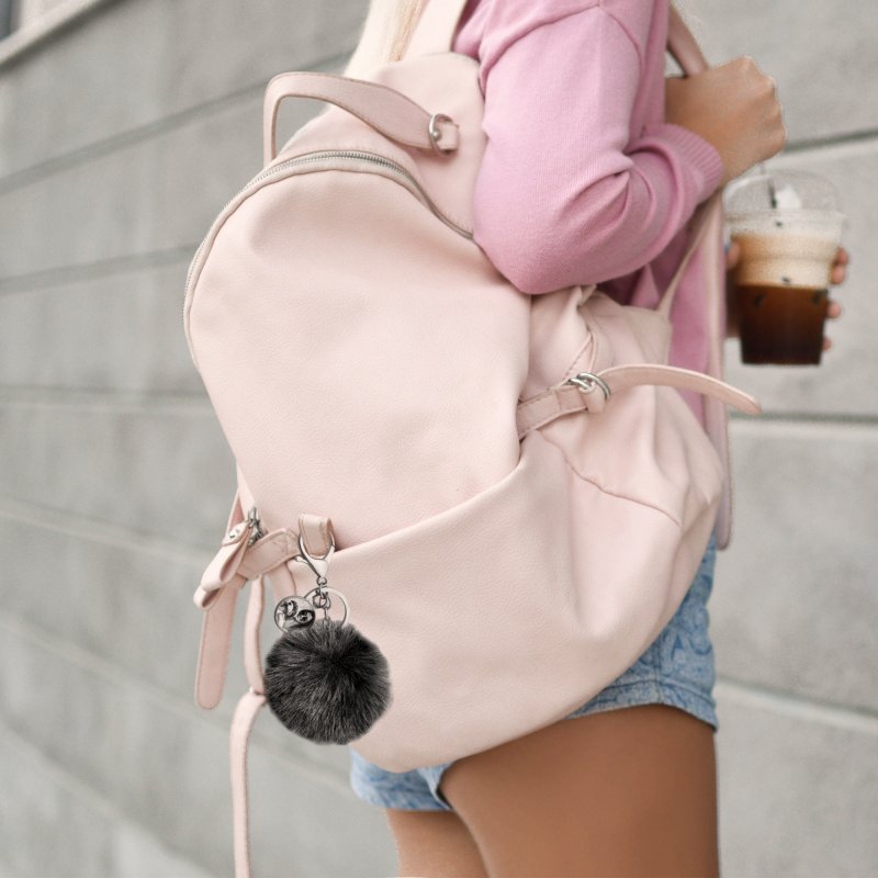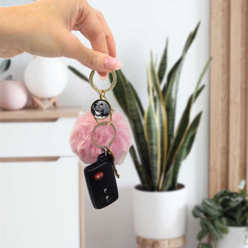 Personalized Custom Photo Laser Engraving Cute Faux Fur Ball Pom Pom Universal Car Key Fob Holder Gold Tone Metal Keychain Lobster Clasp- Leopard