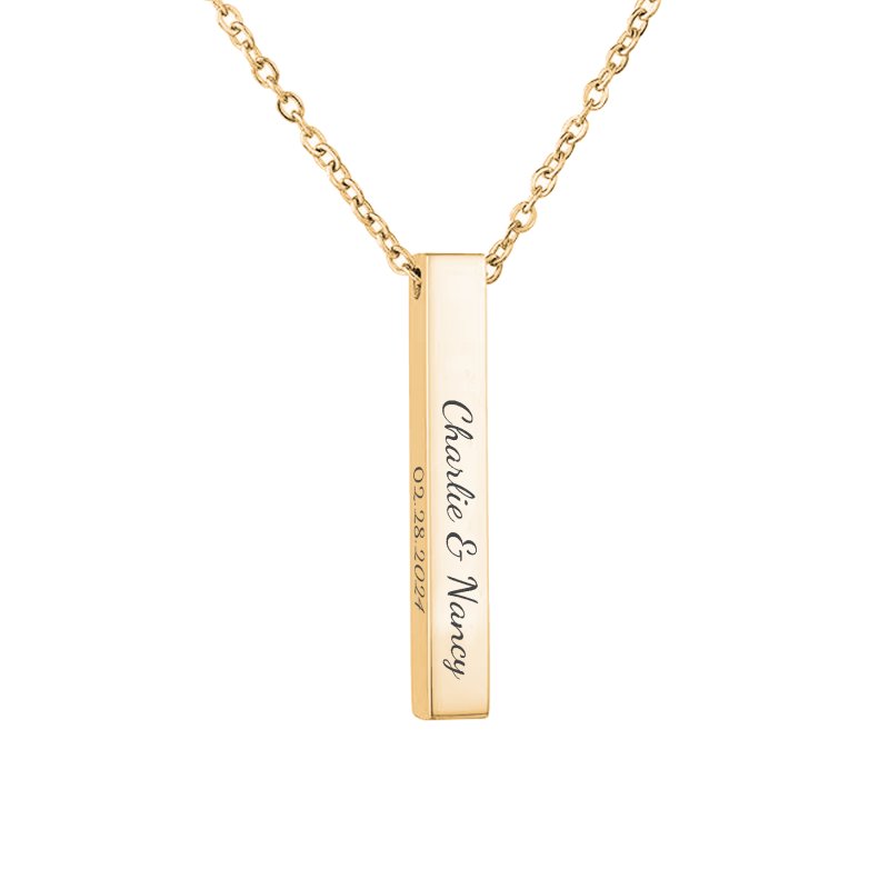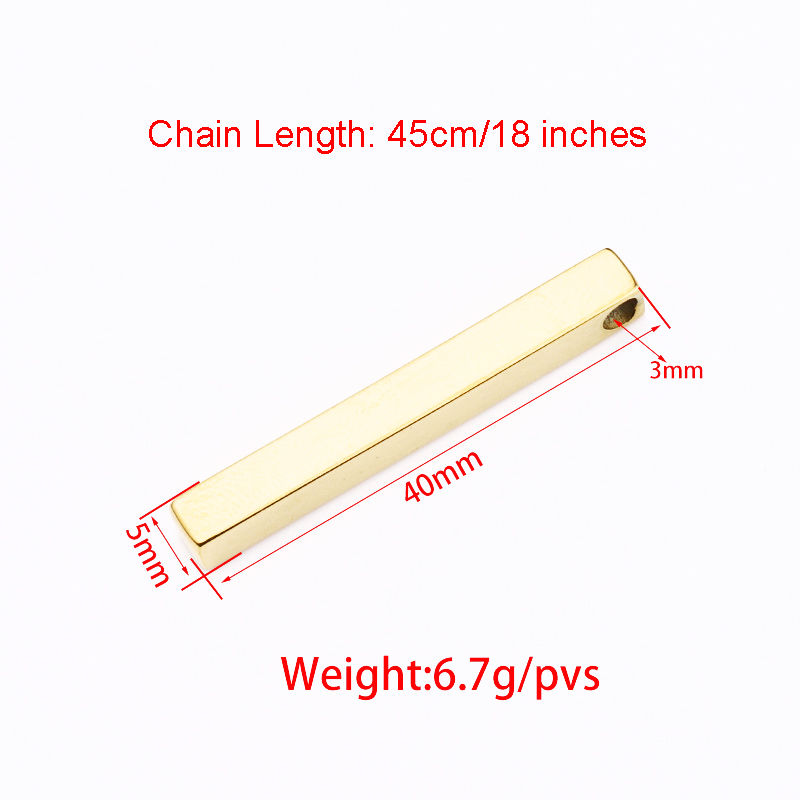 Queenberry Personalized Custom Laser Engraved Text Ip Gold Plated Stainless Steel 3d Bar Dangle Pendant Chain Necklace Gift F/ Women Men