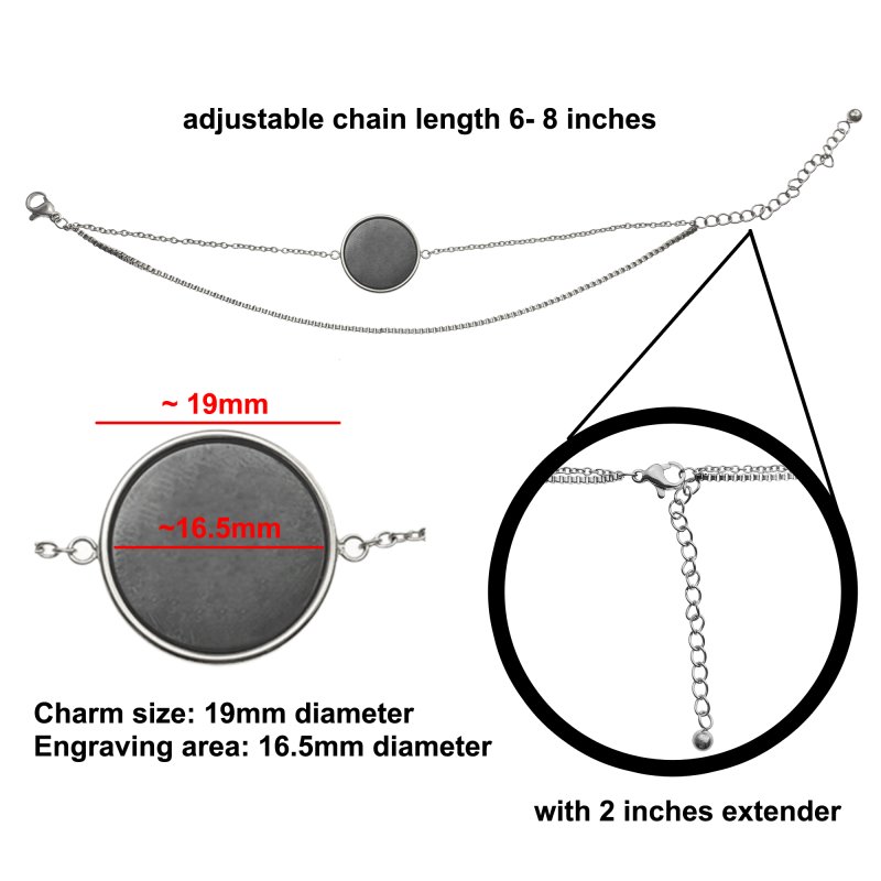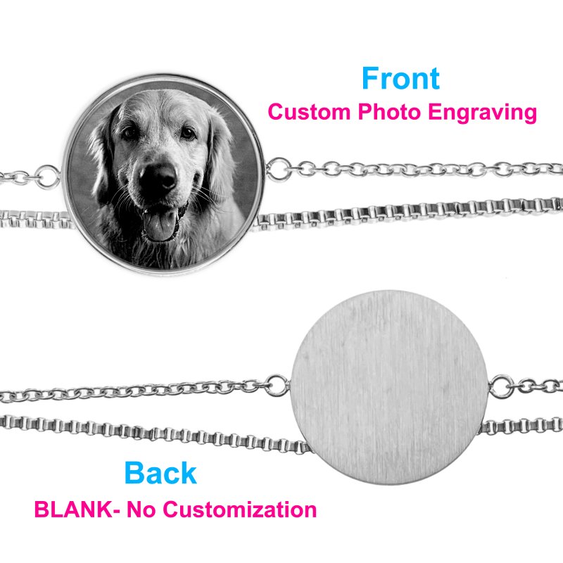 Queenberry Personalized Photo Engraving Custom Picture Charm Dainty Layering Adjustable Double Bracelet