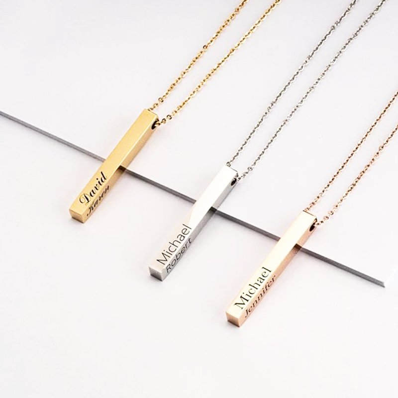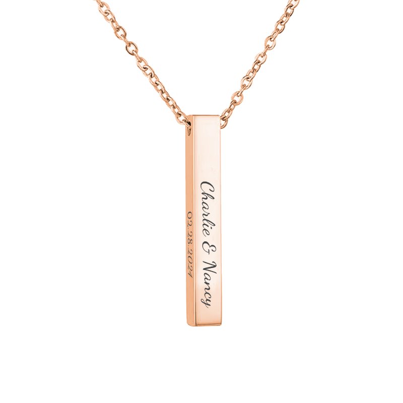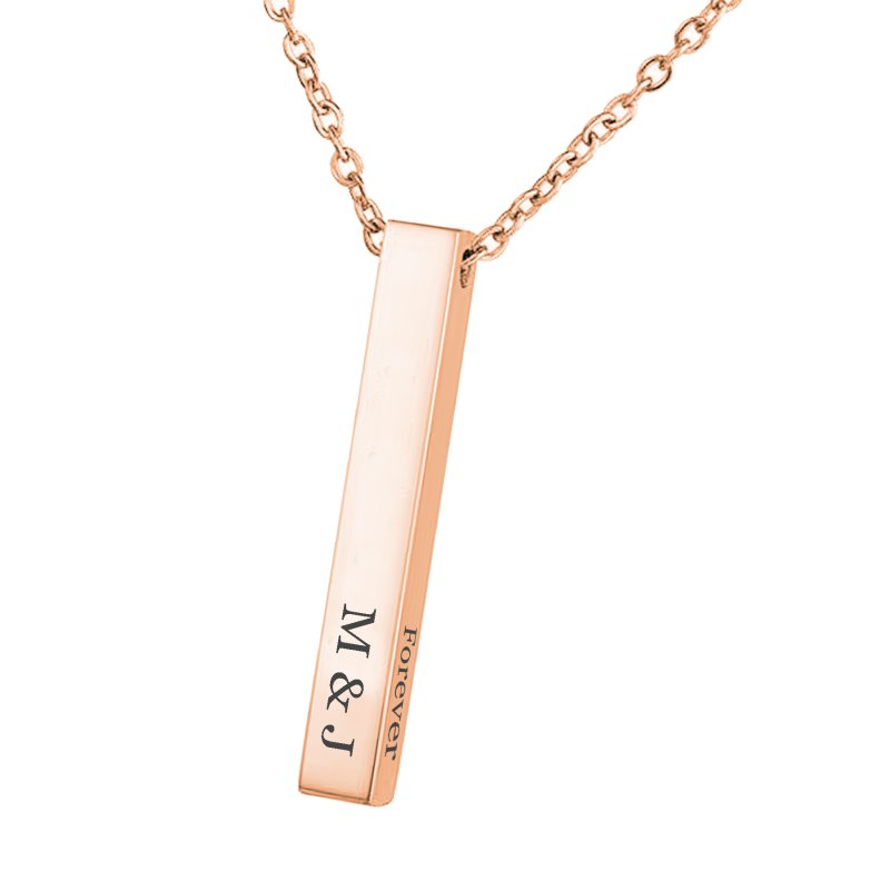Queenberry Personalized Custom Laser Engraved Text Ip Rose Gold Plate Stainless Steel 3d Bar Dangle Pendant Chain Necklace Gift F/ Women Men