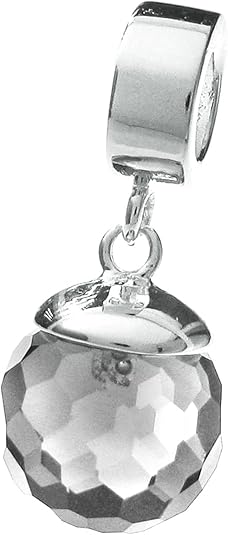 Sterling Silver Clear Crystal Disco Ball Birthstone April Dangle Bead for European Charm Bracelets